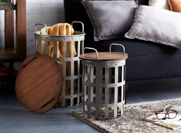Industrial Wire And Wood Basket Side Table Kirklands Home
