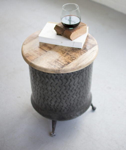 Metal Cylinder With Mango Wood Top Accent Table Kirklands Home